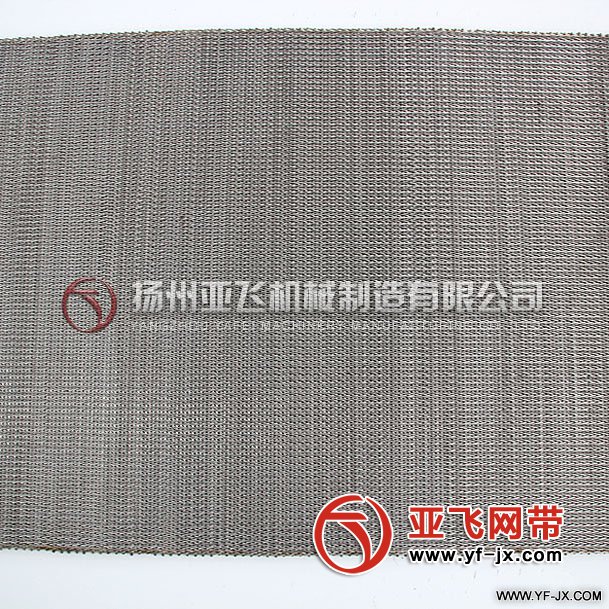 用于自動(dòng)化地板涂裝生產(chǎn)線包括地板烘干回火線、流平機(jī)、輥涂線,使用鏈條型網(wǎng)帶,網(wǎng)帶使用穿絲繞絲編織,兩邊焊接不銹鋼鏈條,網(wǎng)帶中間添加不銹鋼隔套,可以減少摩擦力防止刮蹭,更益于地板的生產(chǎn)和品質(zhì)。