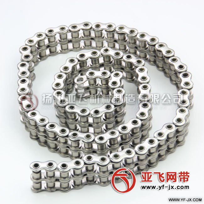 鏈條傳動(dòng)網(wǎng)帶是現(xiàn)國(guó)內(nèi)主要的一種輸送形式,根據(jù)不同的輸送要求設(shè)計(jì)兩側(cè)附帶各種規(guī)格的鏈條,中間加裝連接穿桿,加強(qiáng)輸送帶整體的負(fù)荷能力。